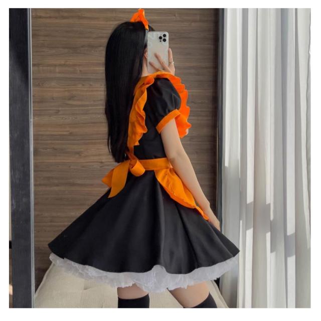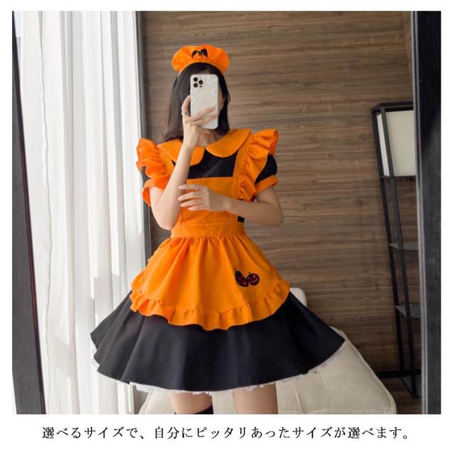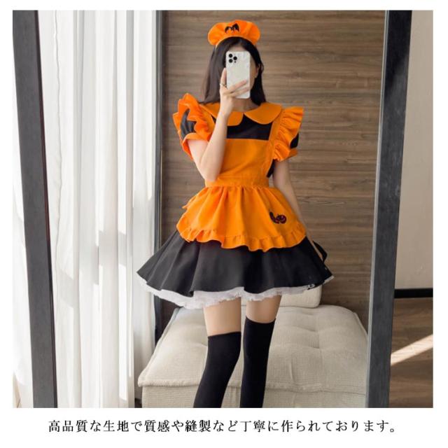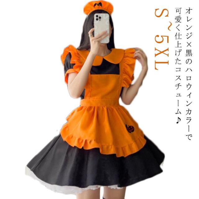 コスチューム コスチューム レディース かぼちゃ コスプレ ハロウイン メイド 仮装 ハロウィーン 変身仮装 衣装 メイドワンピース 膝丈 ロリータワンピース 可愛い 大人 cosplay ティアードドレス 学園祭 文化祭 イベント メイド服