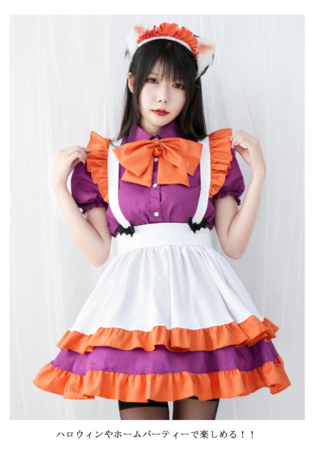 セクシー かぼちゃ メイド服 女性 ハロウィン 大人 学園祭 ハロウィン仮装 メイド コスプレ 衣装 可愛い コスチューム レディース パーティー イベント ステージ衣装 マンガ喫茶 かぼちゃ キュート アリス ロリータ ドレス ウェイトレス エプロン 仮装