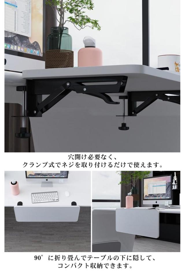 デスク延長テーブル デスク延長板 クランプ式 折りたたみ式 キーボードトレイ 疲れ軽減 PCテーブル マウス収納対応 肘置き台 デスク延長トレイ 人間工学 穴開け不要 拡張テーブル デスクエクステンダー