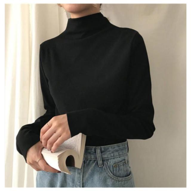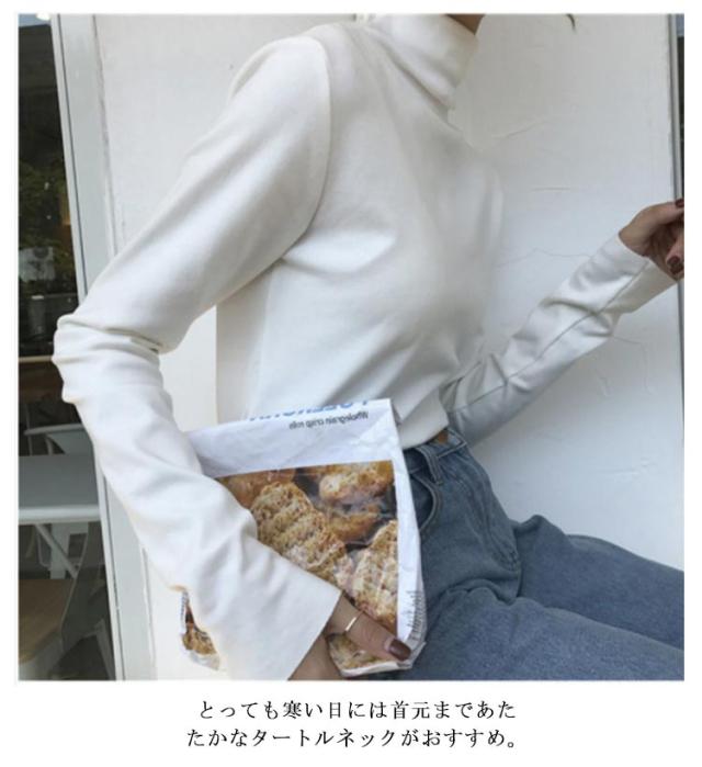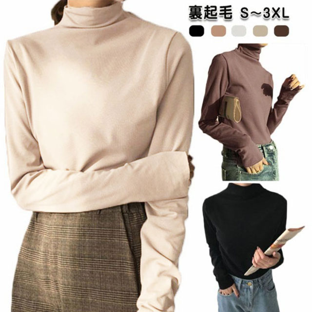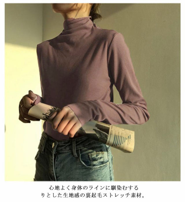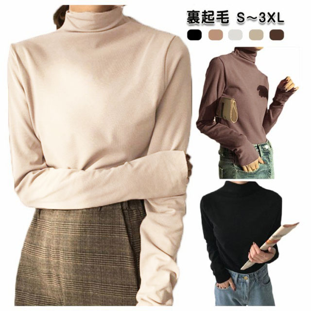 レディース 長袖 無地 裏起毛 プルオーバー カットソー 長そで トップス タートル 大きいサイズ ゆったり 送料無料 インナー
