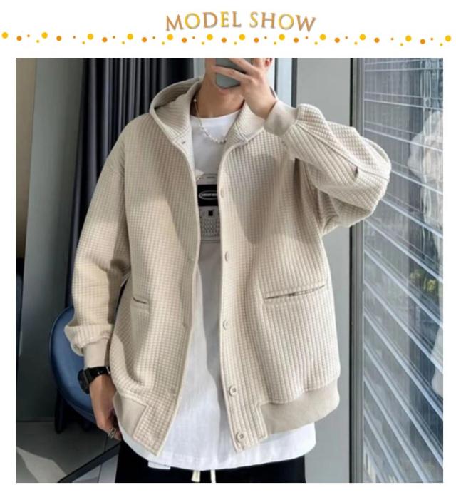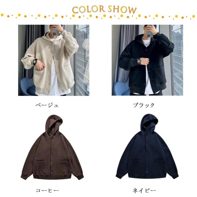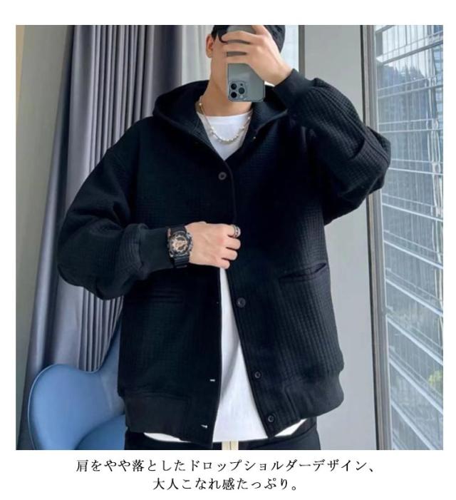 ワッフル 原宿系 アウター フーディージャケット ブルゾン メンズ フード付き パーカー 前開き ジャケット 厚手 アメカジ 20代 モード 30代 カーディガン 羽織り ジャンパー