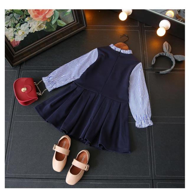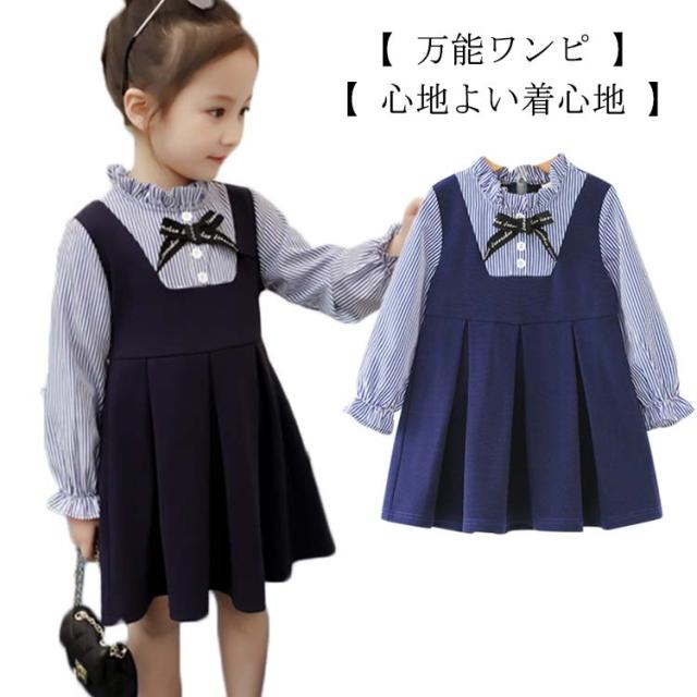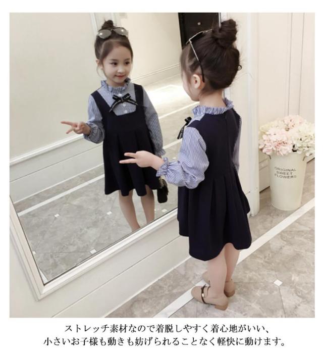 韓国子供服 入学式 キッズ ワンピース 女の子 子供 ボーダー柄 レイヤード風 長袖 子供 子供服 女の子 子供ドレス 重ね着 送料無料 卒園式 演奏会 発表会 結婚式キッズ用 ワンピ こどもワンピース