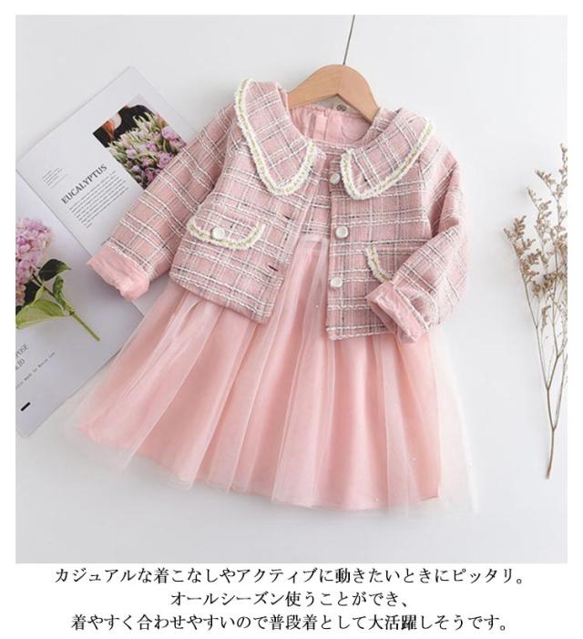 女の子 100 子供 秋 ジャケット フォーマル チュニック 送料無料 フォーマル きれいめ スーツ 小学校 長袖 子ども 子供服 保育園 おしゃれ 七五三 キッズ お姫様 発表会 結婚式 通学 通園 卒業式 90 人気 110 120 130 セットアップ 上下セット ワンピース
