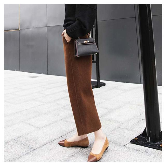 ハイウエスト ウール混 秋冬 定番 定番 ウールライク 9分丈 レディース ボトムス 楽ちん ガウチョ エストゴム パンツ アンクルパンツ クロップド丈 体型カバー 暖かい 無地 オフィス ワイドパンツ あったか 仕事 厚手