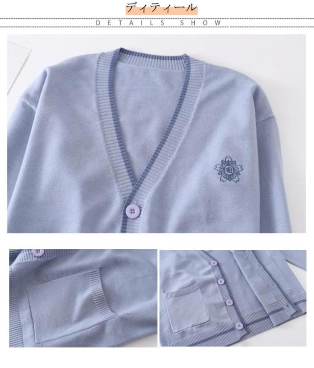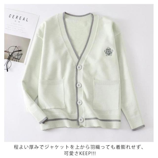 スクールカーディガン 制服 ニットカーディガン 桜 オールシーズン 高校生 刺繍 カーディガン ライン ゆったり ニット Vネック JK制服 学生服 中学生 女子 通学 入学 スクールセーター セーラー服 レディース コスプレ イベント 制服