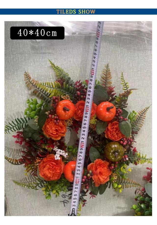 ハロウィン 上品 リース 装飾 部屋 秋 北欧 パンプキン 40*40cm お家ハロウィン 飾り ナチュラル ハロウィンカラー オレンジ インテリア オータムリース おしゃれ 高級 豪華 壁掛け かわいい ドア 玄関
