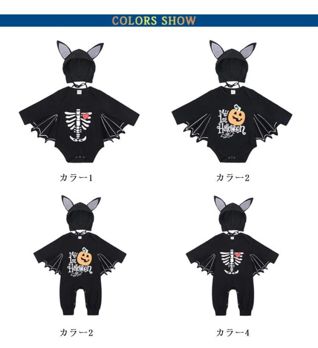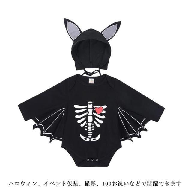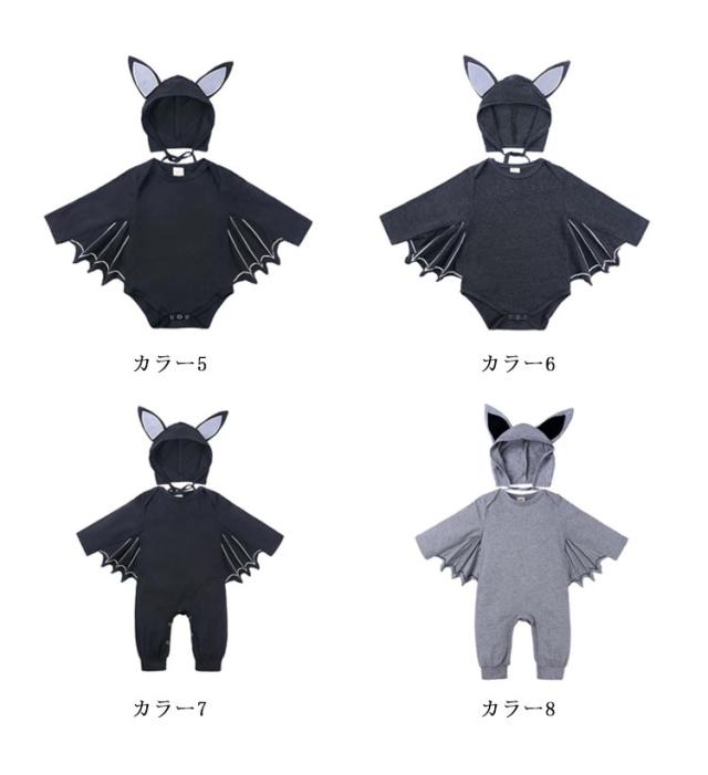 80 ロンパース 赤ちゃん 衣装 ベビー ハロウィン コスチューム 仮装 70 コウモリ 90 着ぐるみ 子供 つなぎ コスプレ カバーオール こうもり 女の子 男の子 キッズ 綿 かわいい パーティー 撮影 100cm