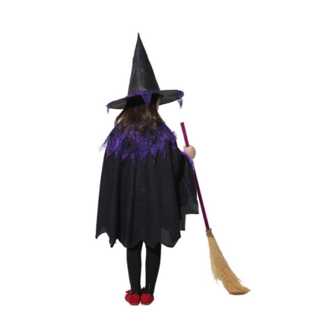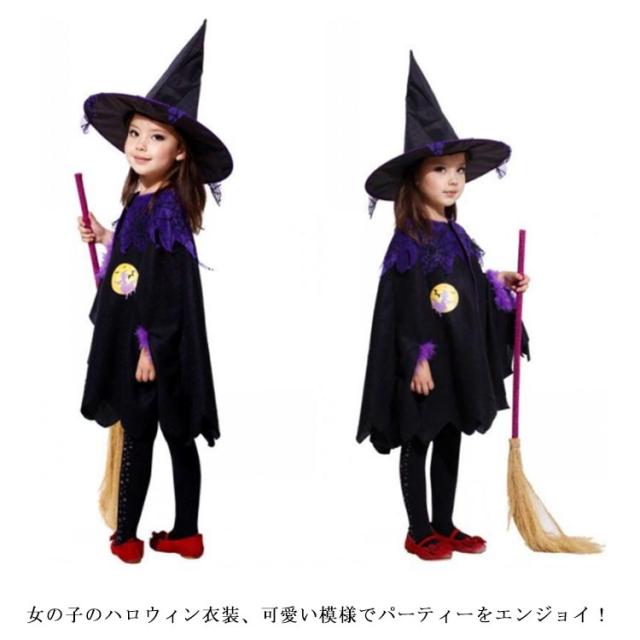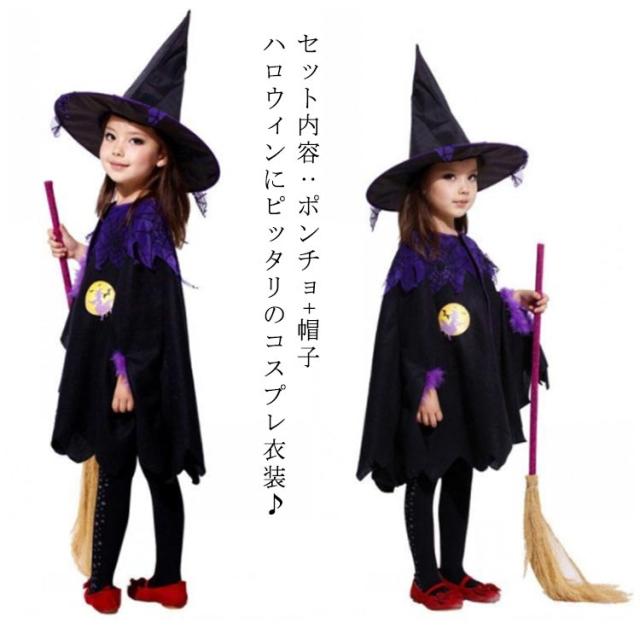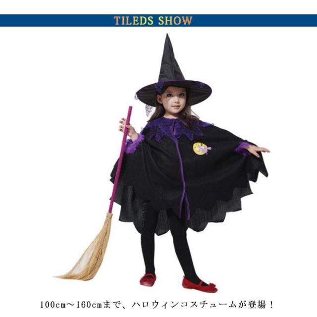 ウィッチ コスチューム 魔法使い ハロウィン 子供 マント ポンチョ 仮装 パープル 100-160cm パーティー 魔女 帽子付き 衣装 キッズ ジュニア 子ども かわいい 変装 お化け コスプレ 可愛い ハロウィーン 女の子