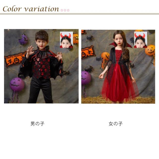 バンパイア コスプレ コスチューム 子供服 ワンピース 衣装 ドラキュラ 吸血鬼 ハロウィン ケープ風 Halloween 女の子 男の子 悪魔 ハロウィン パーティー 仮装用 おばけ イベント 演出服 学園祭 ジュニア