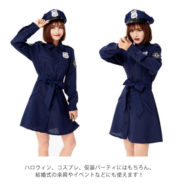 文化祭 仮装 ミニスカポリス 警察官 ハロウィン 長袖 女性 ハロウィンコスプレ ポリス 婦警 コスプレ 可愛い 大きいサイズ レディース ワンピース 帽子付き 衣装 コスチューム イベント パーティー 制服