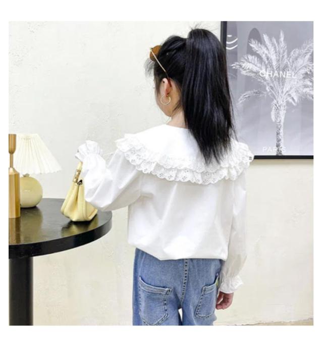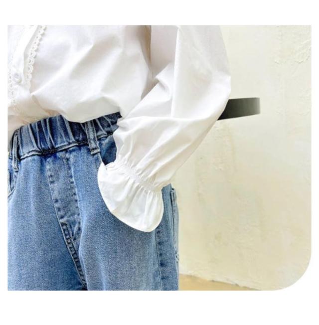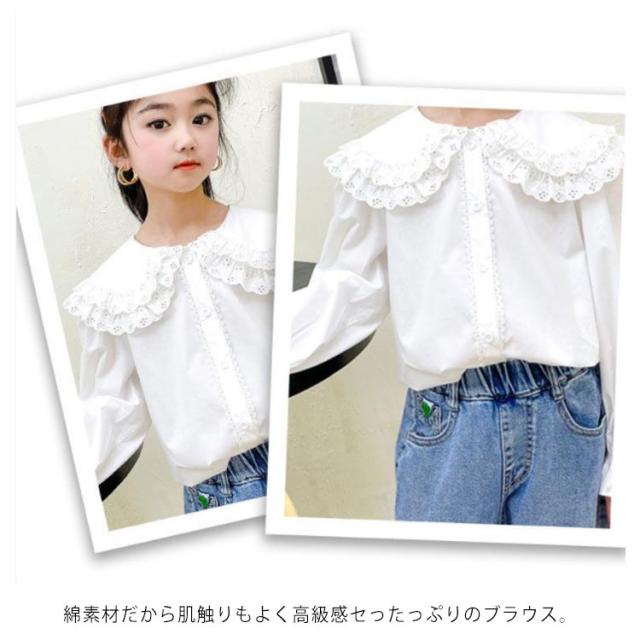 無地 レース ホワイト 韓国子ども服 カラーブラウス 長袖 カラーブラウス フリル 白 シャツ 韓国子供服 韓国子ども服 卒園式 入園式 入学式 フリル