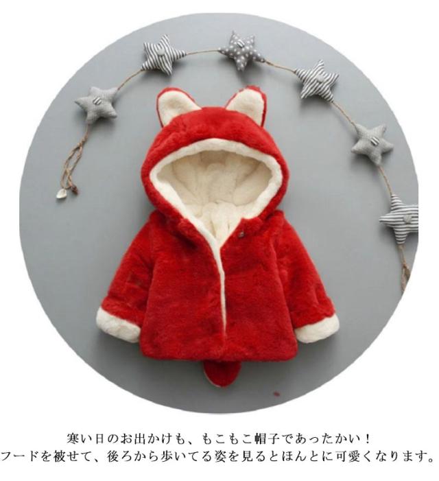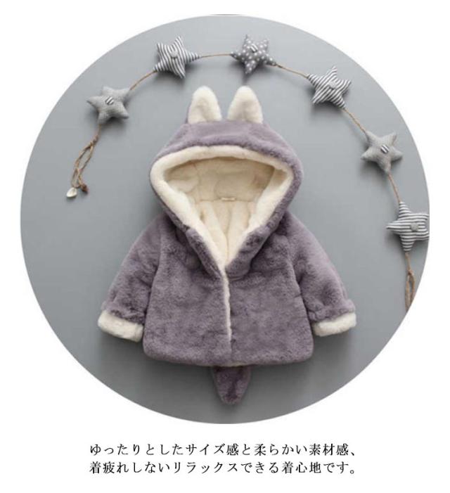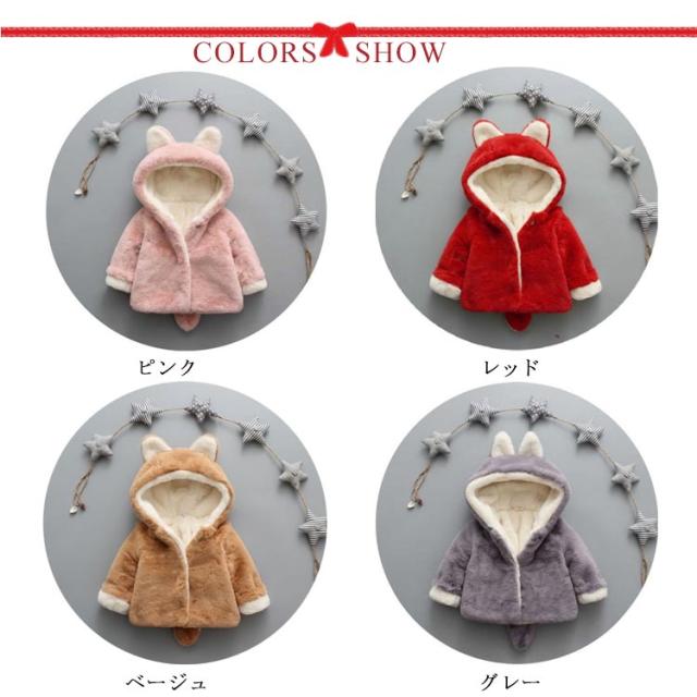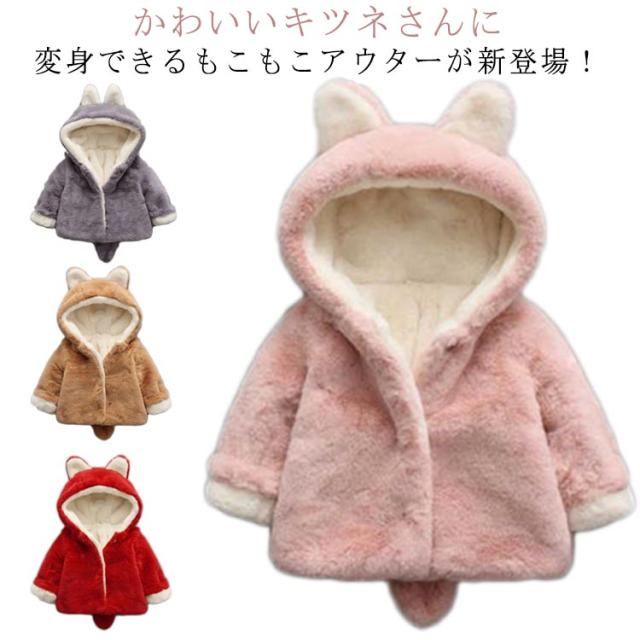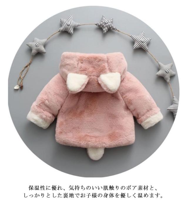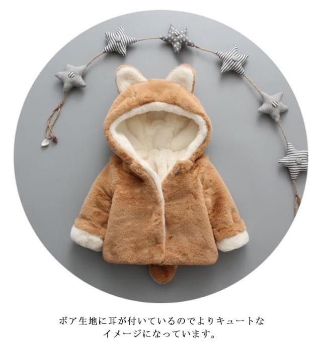 しっぽつき フェイクファー ふわふわ 防寒 防寒着 コート キュート キッズ ベビー アウター ジャケット パーカー 長袖 モコモコ 着ぐるみ トップス ボア フリース もこもこ ボア 耳付き ボアアウター 裏起毛 女の子 子供服