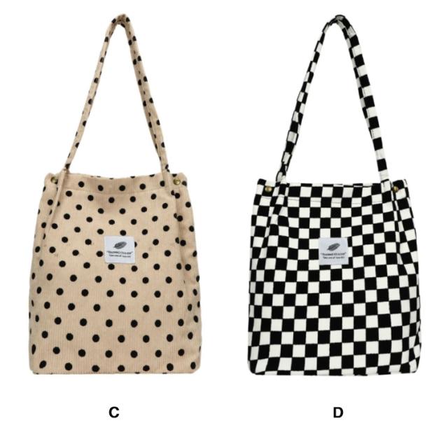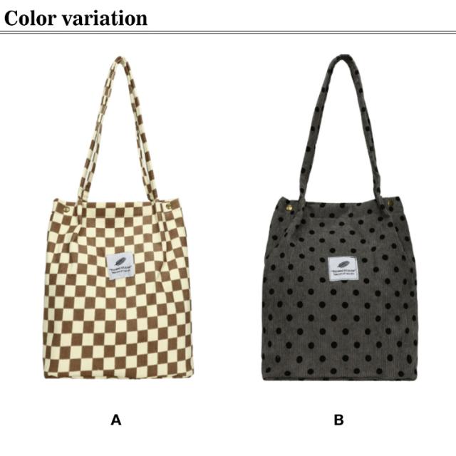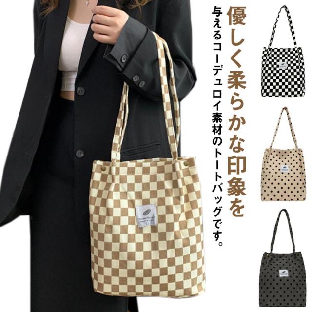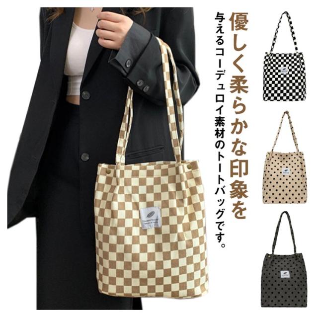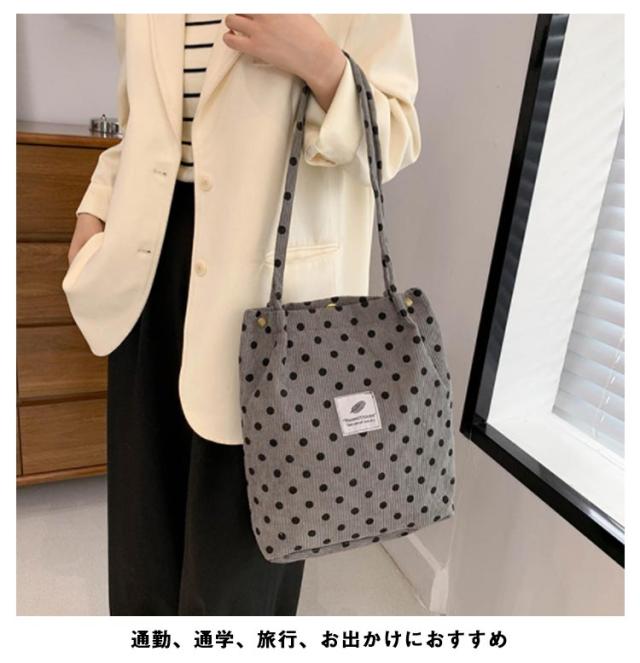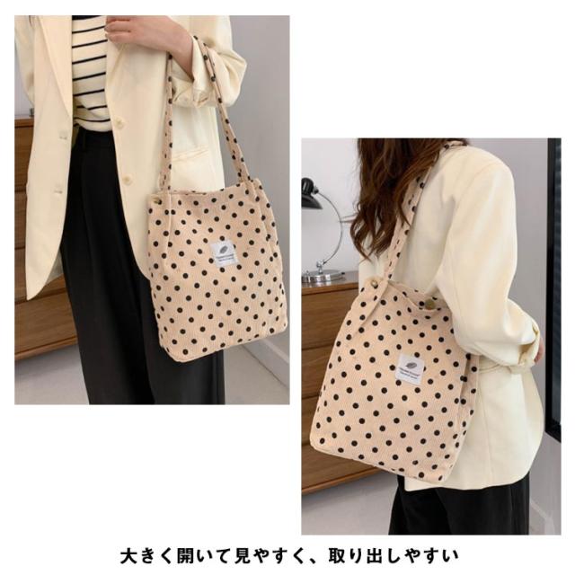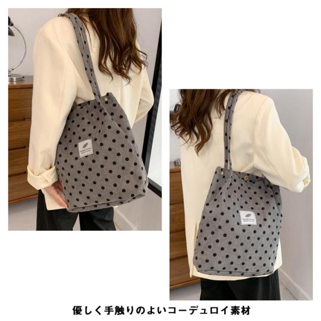 軽量バッグ エコバッグ レディース ショルダーバッグ 軽い カバン コーデュロイ 大きめ エコバック トートバッグ 水玉 トッド柄 折りたたみ コーディロイ バッグ エコバッグ マザーズバッグ a4