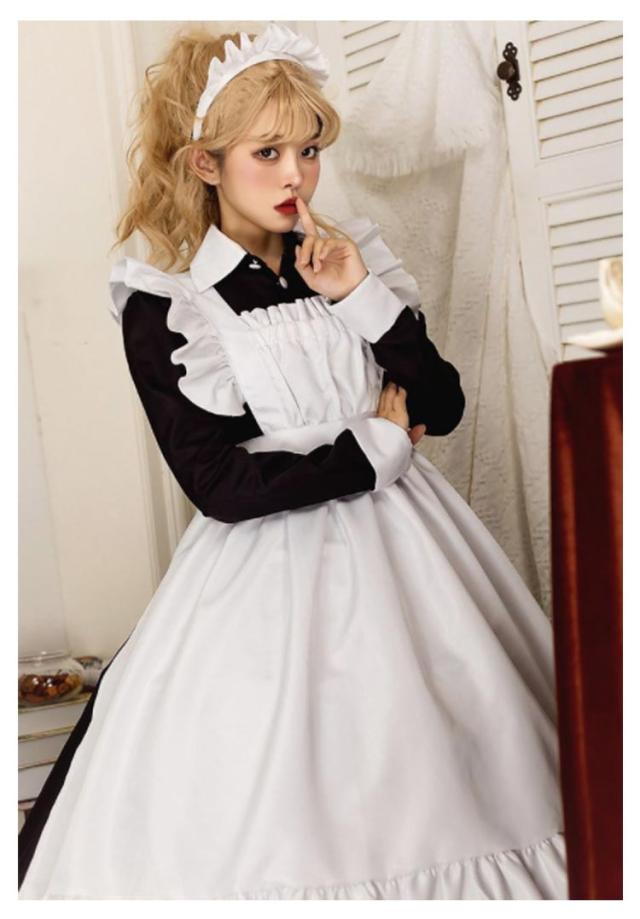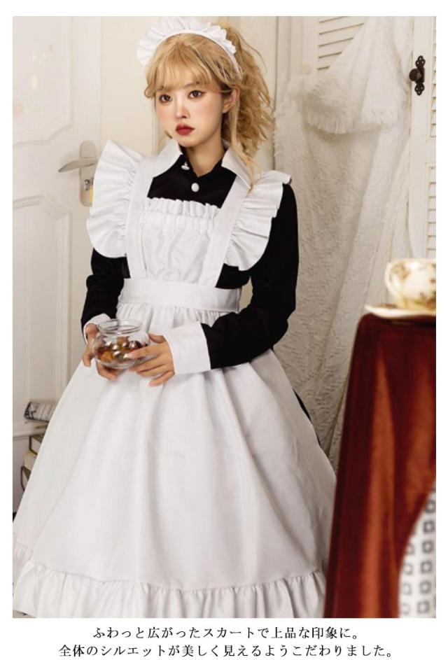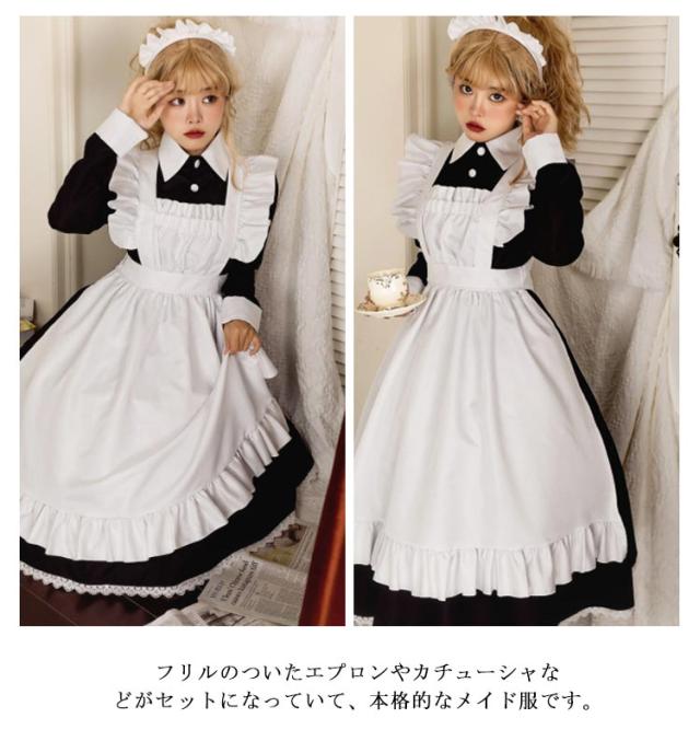 メイド 可愛い メイド服 コスチューム 長袖 カチューシャ付き 喫茶店 仮装 カフェ 文化祭 エプロン レディース ロリータ フリル 制服 ハロウィン メイド服 撮影 学園祭 イベント パーティー コスプレ衣装