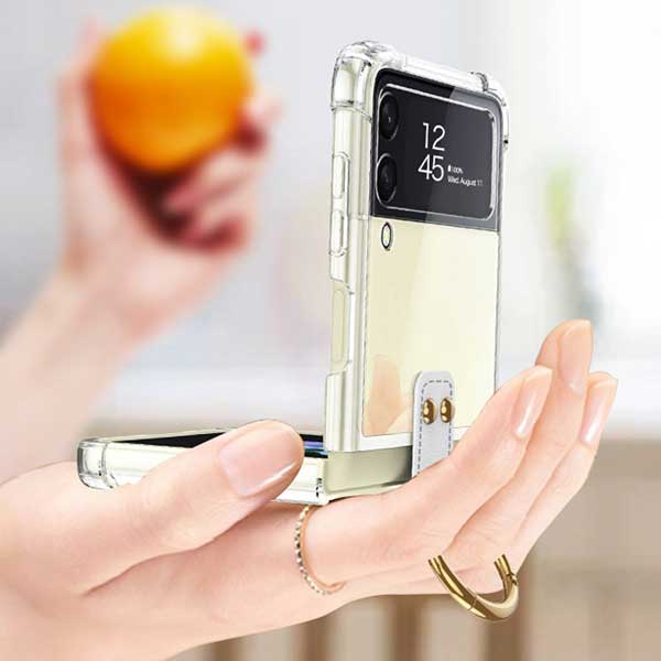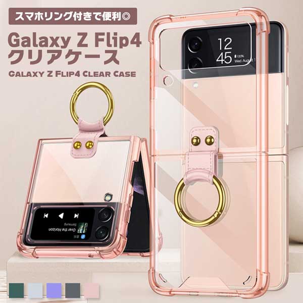 Galaxy Z Flip4 ケース クリア リング おしゃれ カバー ホールドリング PC素材 ハードケース カバー 軽い カラビナタイプ ギャラクシー ハードカバー スマホケース スマホカバー 折り畳み 送料無料