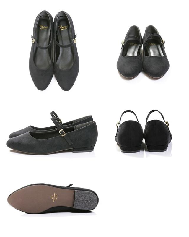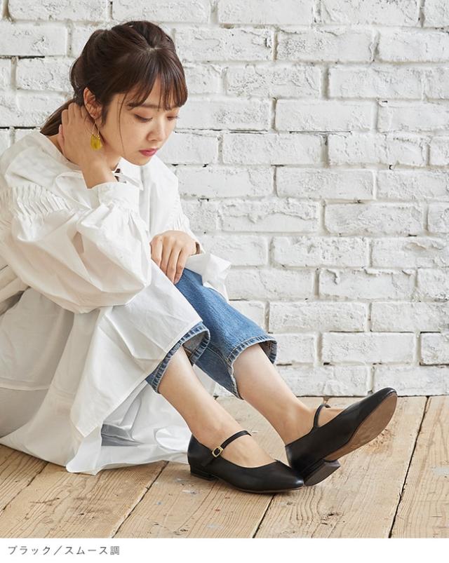 3素材 ストラップ ローヒール パンプス [ menue メヌエ ]