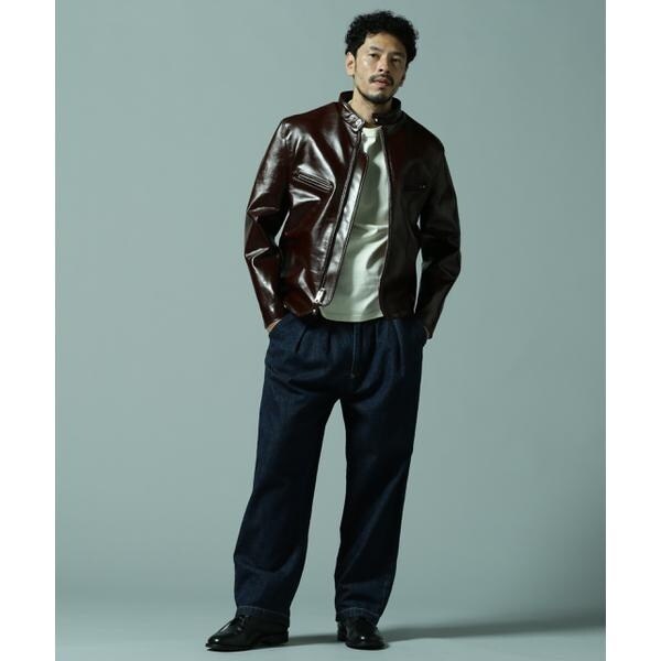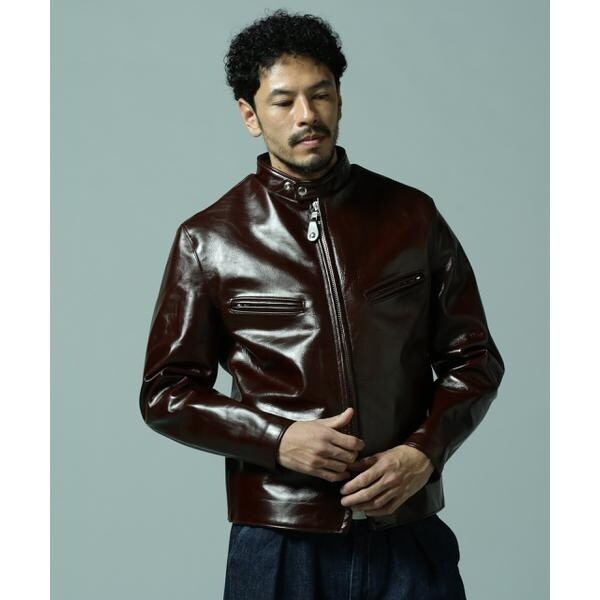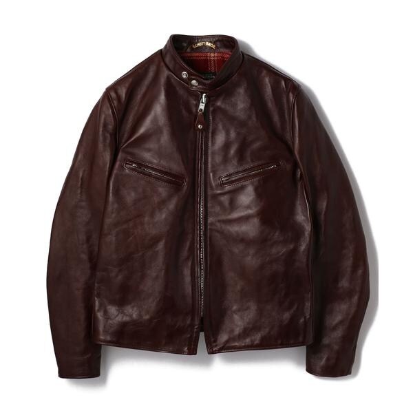 日本屈指のタンナーにてSchottの為だけのレシピを組んで生産しているベジタブルタンニン鞣しの茶芯ホースハイドを使用したライダースです。