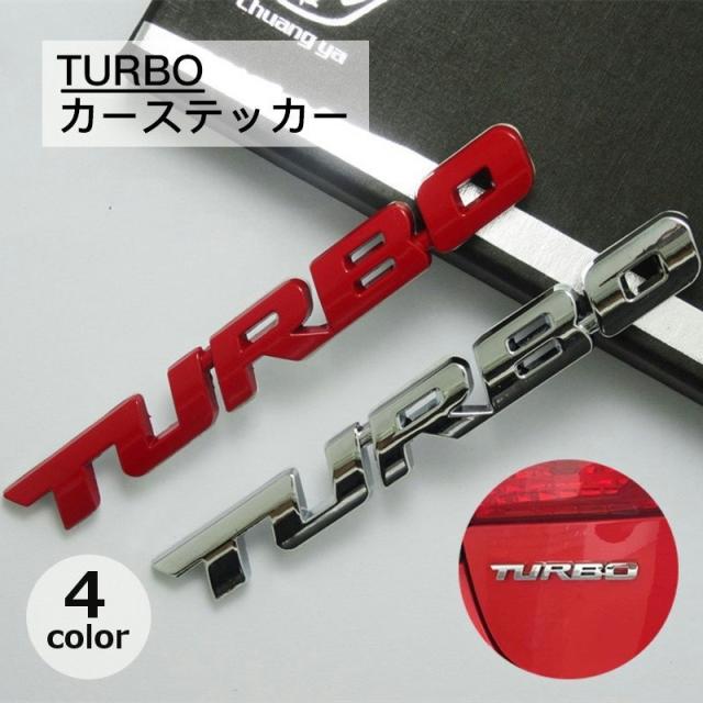 カーステッカー TURBO メタリック シルバーカラー ブラック 車 ドレスアップ ワンポイント かっこいい 立体 3D