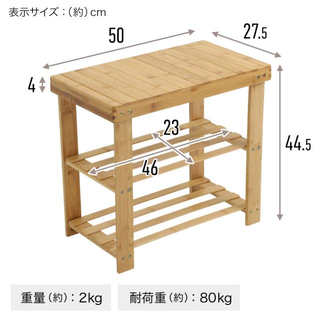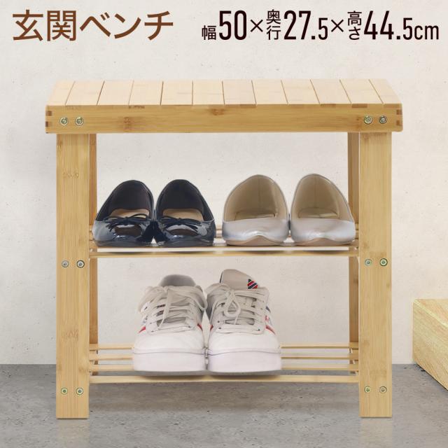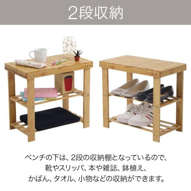 木製シューズラック 玄関ベンチ 2段 靴棚 エントランスベンチ 玄関小物 靴収納 椅子 フットスツール ナチュラル