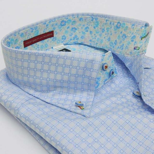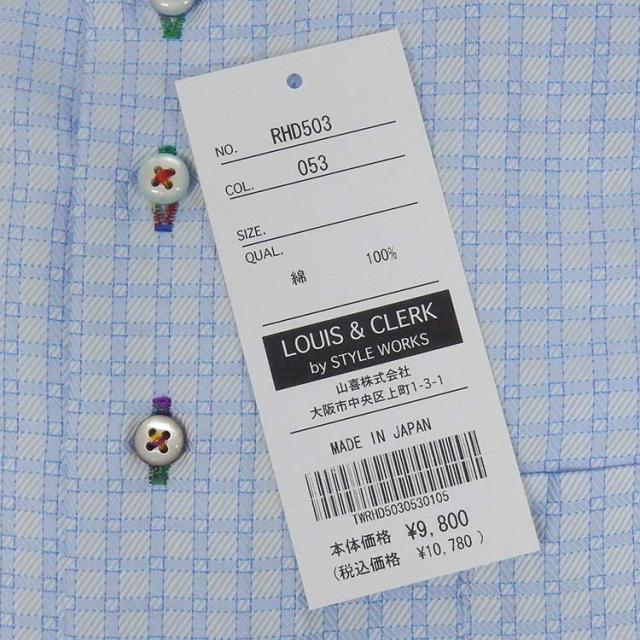 [LOUIS&CLERK] 長袖ワイシャツ ライトブルー/格子柄 綿100% 日本製 ドゥエ ボタンダウン メンズドレスシャツ LC503-053