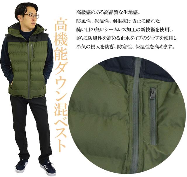 送料無料 暖 シームレスダウンベスト メンズ ダウンベスト フード付き 撥水加工 ダウン混 中綿ベスト 防寒ベスト 防風ベスト ボリュームネックベスト 温い 秋 冬 春 アウトドア キャンプ 釣り バイカー スポーツ 自転車 男女兼用 黒 カーキ 紺 冬 秋 新作