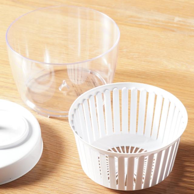 バスケットは取り外せるので、単品でザルとしてもお使いいただけます。容器は、ボウルとしても活躍します。サラダの盛り付けにもぴったりです。
