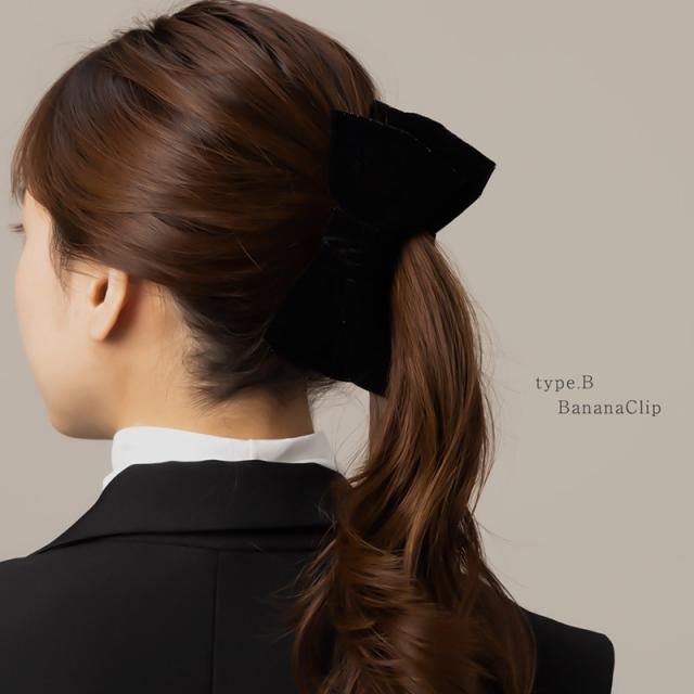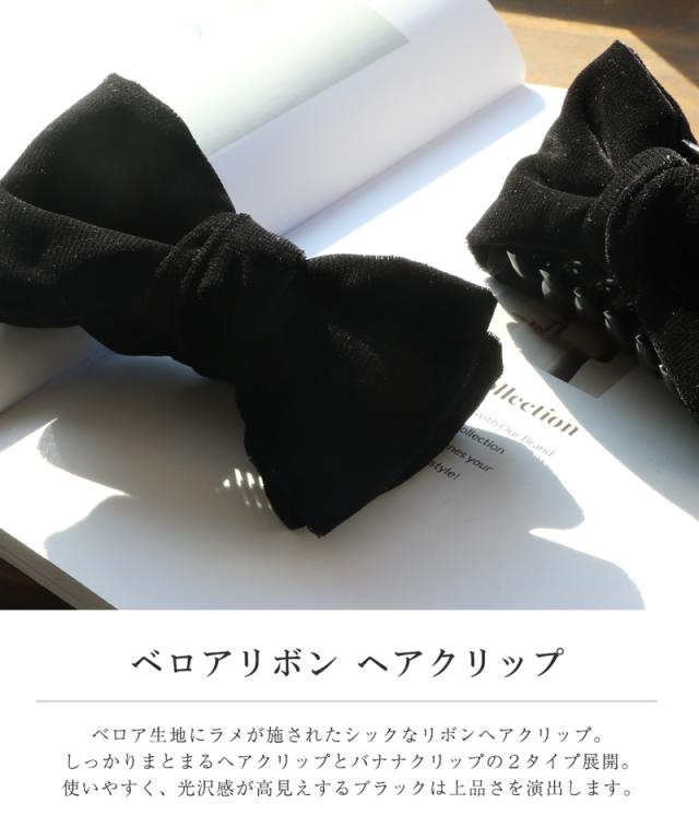 バナナクリップ ヘアクリップ クリップ ヘアアクセ レディース リボン ブラック ベロア ラメ ヘアアレンジ ポニーテール メール便不可 しっかり留まる 髪留め まとめ髪 パーティー デイリー カジュアル トレンド 人気 可愛い 女性 30代 40代 50代 ブランド ポイント消化 消費