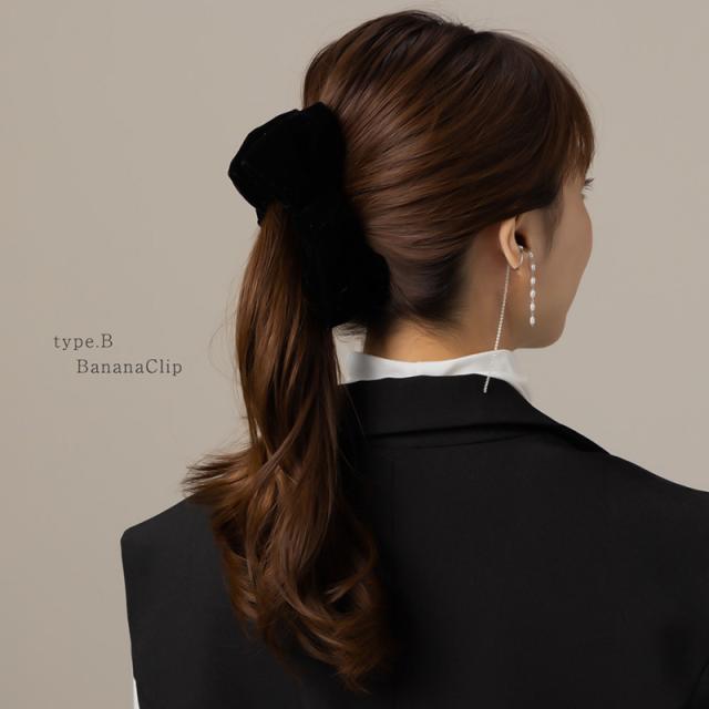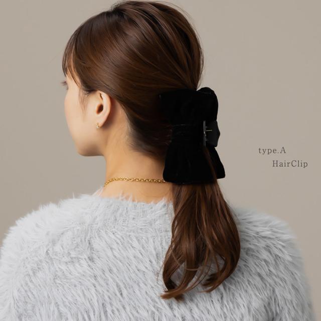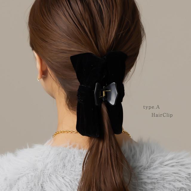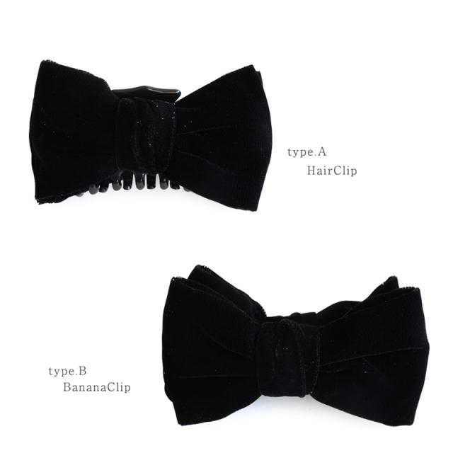 | ベロア生地にラメが施されたシックなリボンヘアクリップ。 しっかりまとまるヘアクリップとバナナクリップの2タイプ展開。 使いやすく、光沢感が高見えするブラックは上品さを演出します。 | |