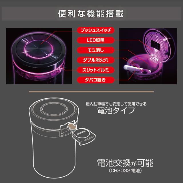 星光産業 リングアッシュ ピンク 電池式 ピンクダブルリングイルミ付 灰皿 吸い殻入 タバコ 電子タバコ等 車内収納 ED-232