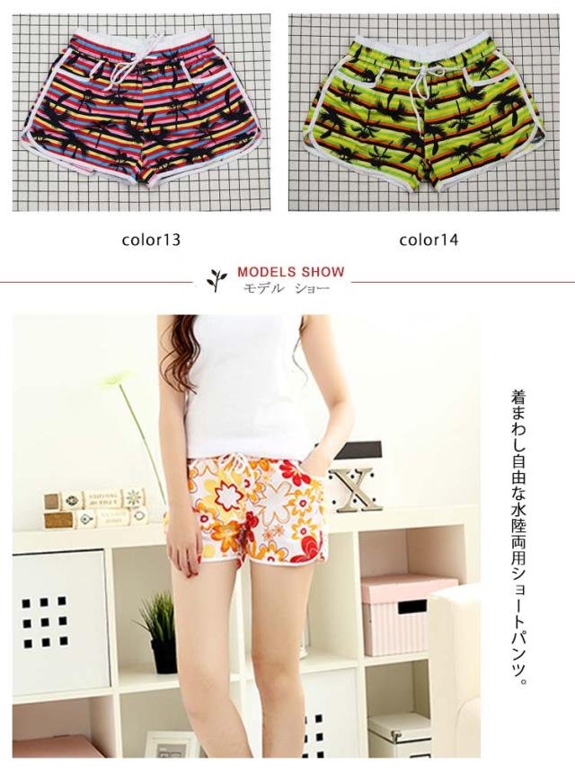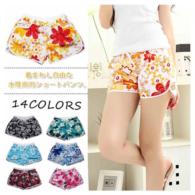 サーフパンツ レディース 水着 パンツ ショートパンツ 水陸両用 体型カバー ラッシュガード UVカット ビーチウエア 海水浴 スポーツ 総柄 プリント ボトムス オシャレ 夏
