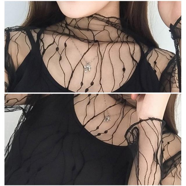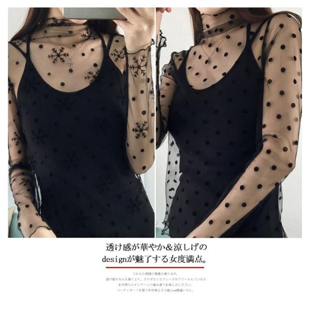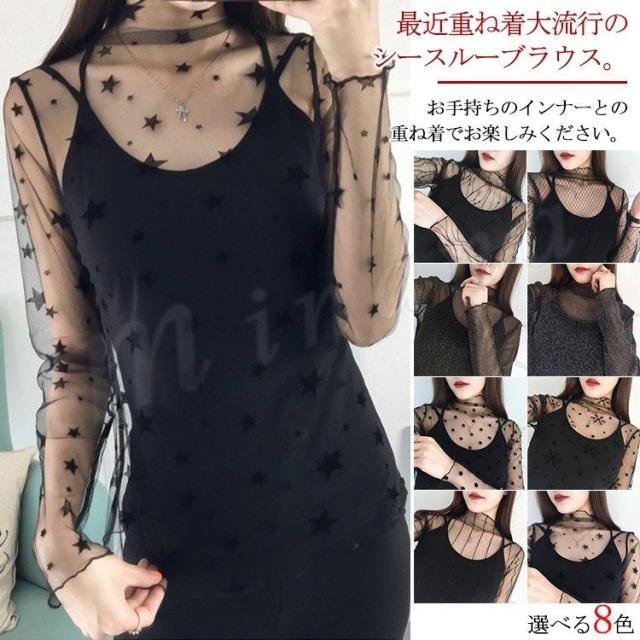 送料無料【】シースルーで女性美up!単品 ブラウス 透け インナー レース シースルー シースルーブラウス 長袖 セクシー 大人 可愛い 星柄 ドット柄 春 夏 秋 冬