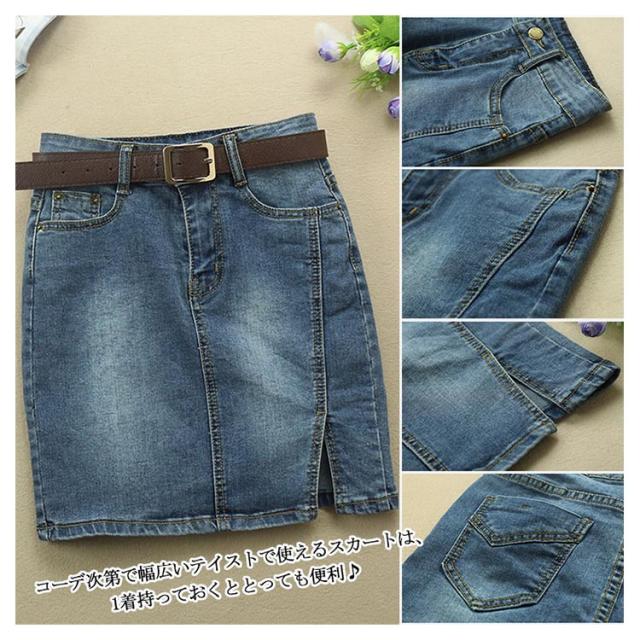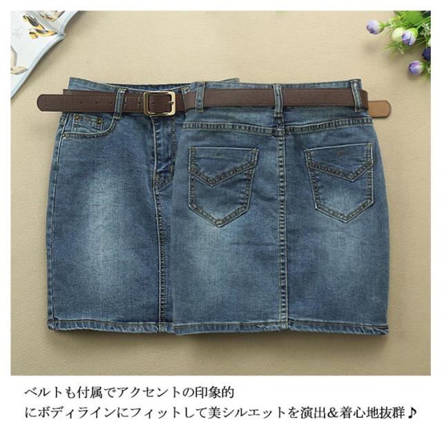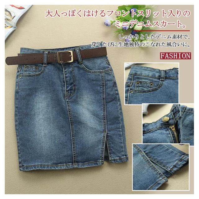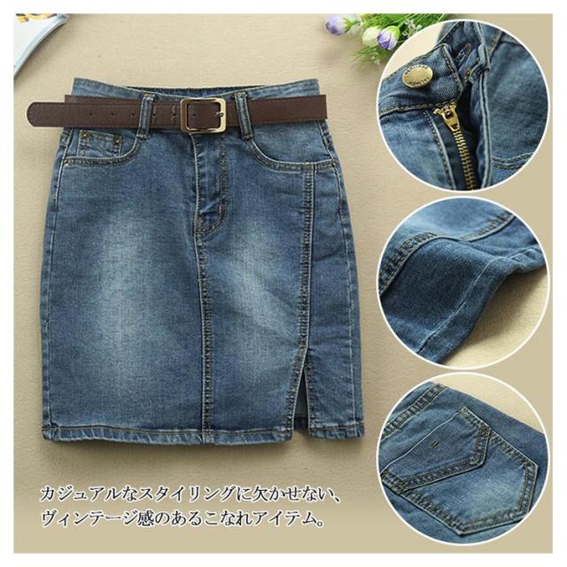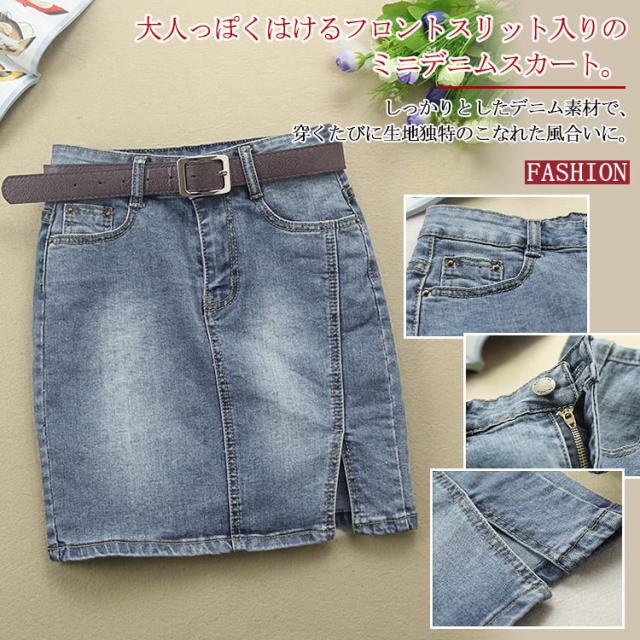デニムタイトスカート ベルト付き デニムスカート デニム タイトスカート ミニ ショート丈 スリット入り 美脚 タイト 春夏