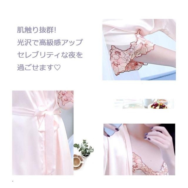 ネグリジェ ロングガウン 高級感 セクシー 2点セット ルームウェア おしゃれ サテン シンプル キャミソール