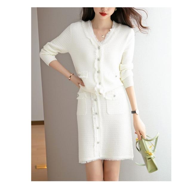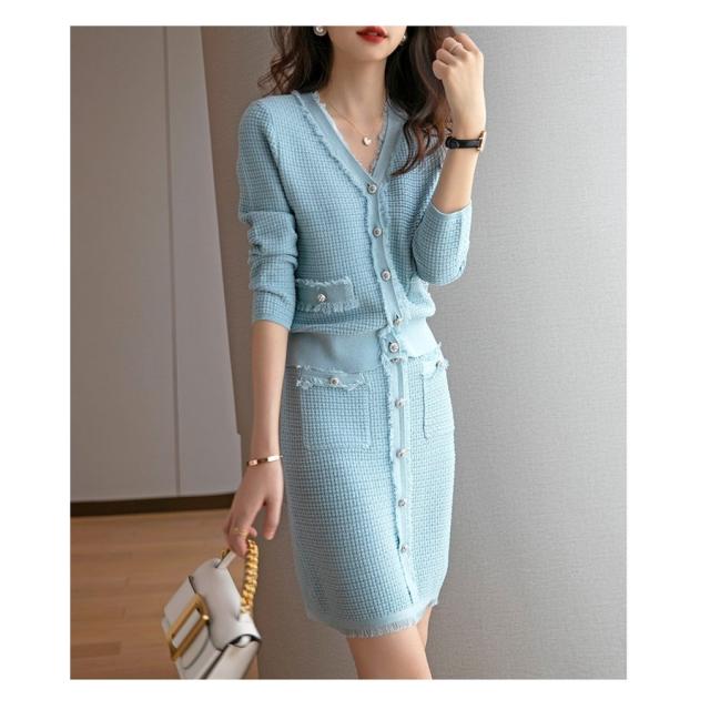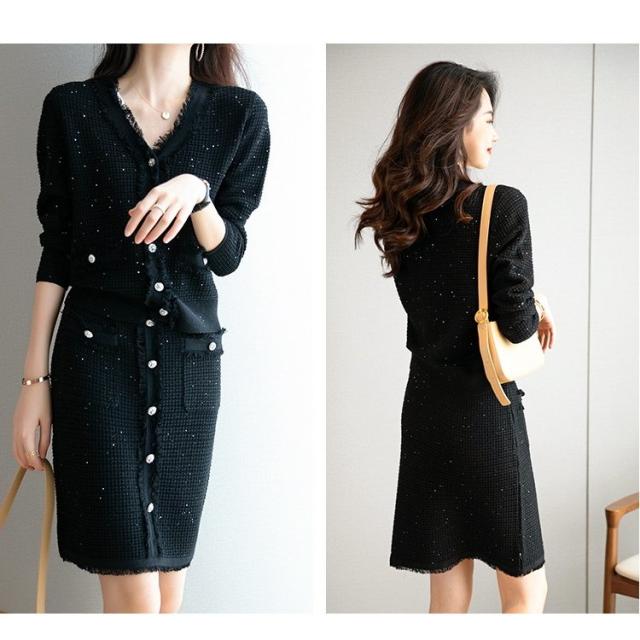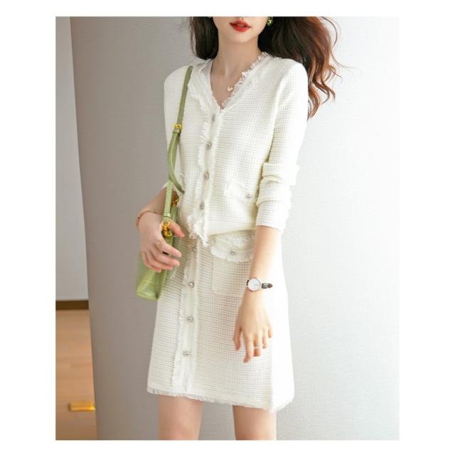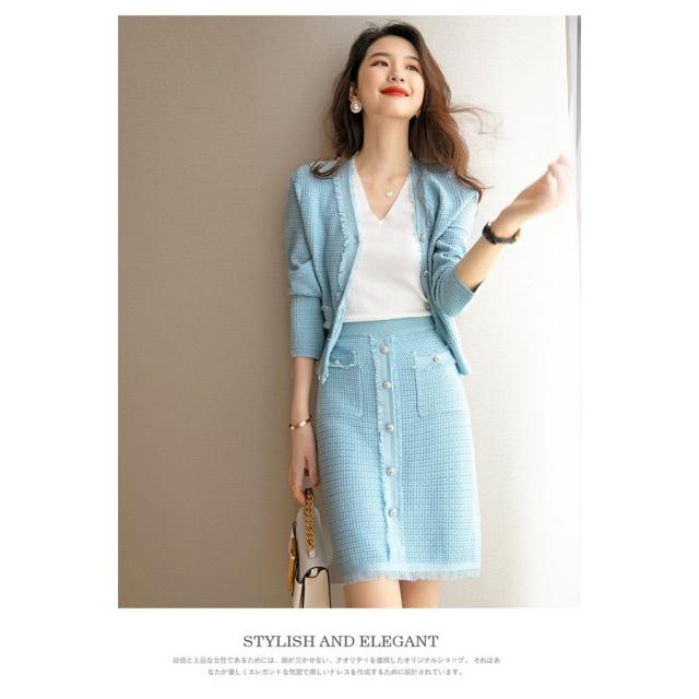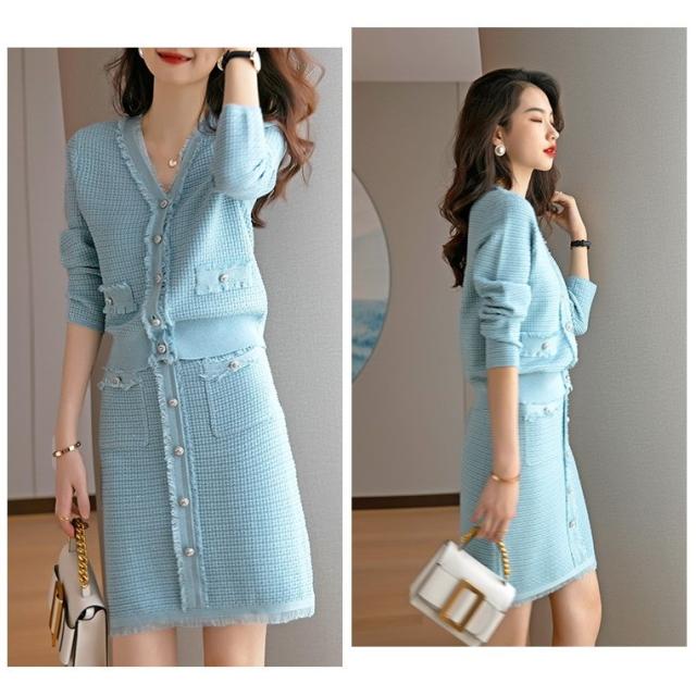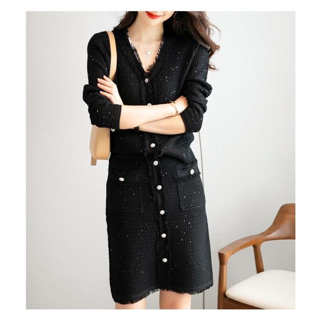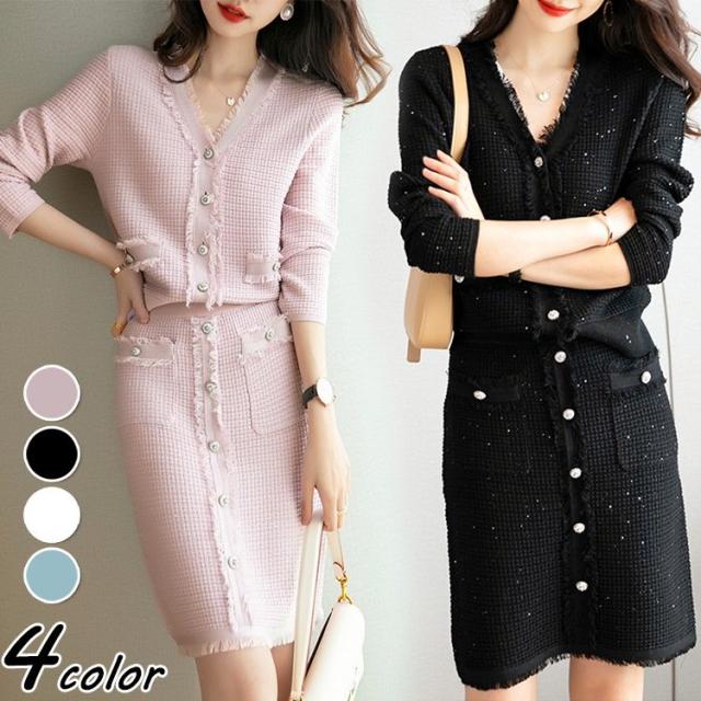 ニットワンピースセット レディース 40代 秋冬 長袖 ニットカーディガン 膝丈タイトスカート ニットセットアップ オシャレワンピース 着痩せ 大人 通勤 入学式