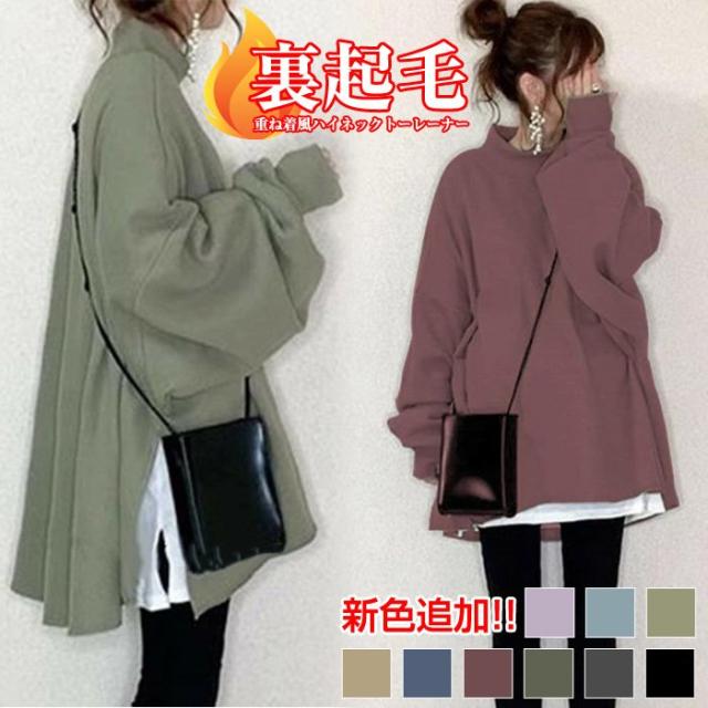 トレーナー プルオーバー 裏毛 スウェット レディース 重ね着風 裏起毛 tl348 トップス 秋