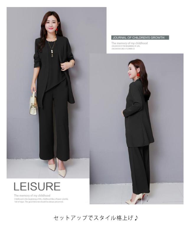タンクトップ+ワイドパンツ+カーディガン 3点セット レディース セットアップ パンツスーツ Uネック タンクトップ ワイドパンツ イージーパンツ ロングパンツ エレガント フェミニン フォーマル 通勤 ビジネス オフィス 入学式 卒業式 お宮参り