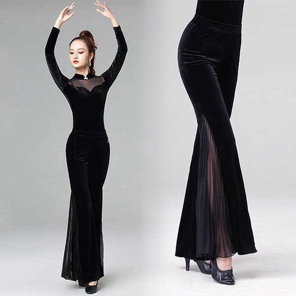ラテンダンス 衣装 社交ダンス ラテン ゆったり シースルー ダンス用 ダンスウェア 練習着 パンツ