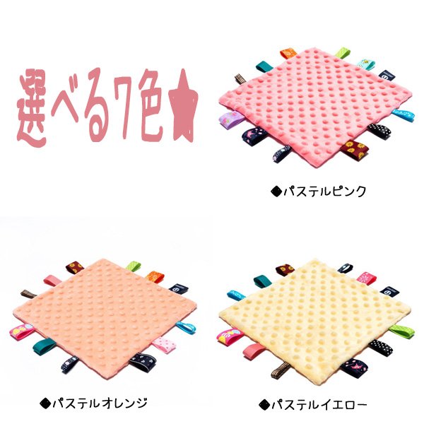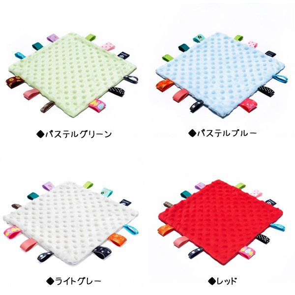 | サイズについての説明 | 赤ちゃんが大好きな、タグがいっぱいついたお遊びタオルです♪ ふんわり柔らかい素材で、ずっと触っていたくなりそうな肌触りです 舐めたり、触ったりして、指先や触覚の運動になりますよ☆ お遊び用だけでなく、ハンカチタオルとしてもお使いいただけます♪ プレゼントにもおススメです☆ サイズ:25センチ×25センチ 1-3センチの誤差はご了承くださいませ。 素材:パステルピンク/パステルオレンジ/パステルイエロー/パステルグリーン/パステルブルー/ライトグレー/レッド ※モニターの都合上、掲載写真と実際の色が異なる場合がございます。 ※メーカーOEMの都合上、仕様が若干変更になる場合がございます。あらかじめご了承ください。海外メーカーお取り寄せの場合は、納期にお時間がかかります。 |