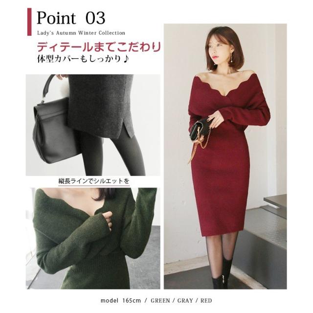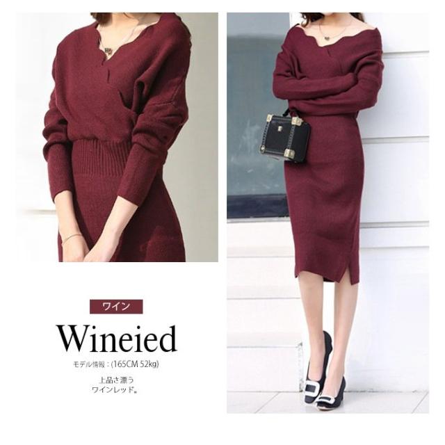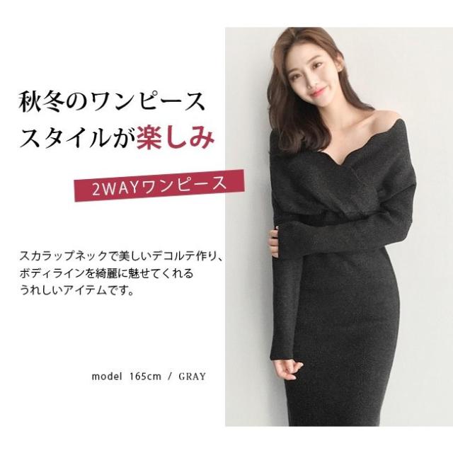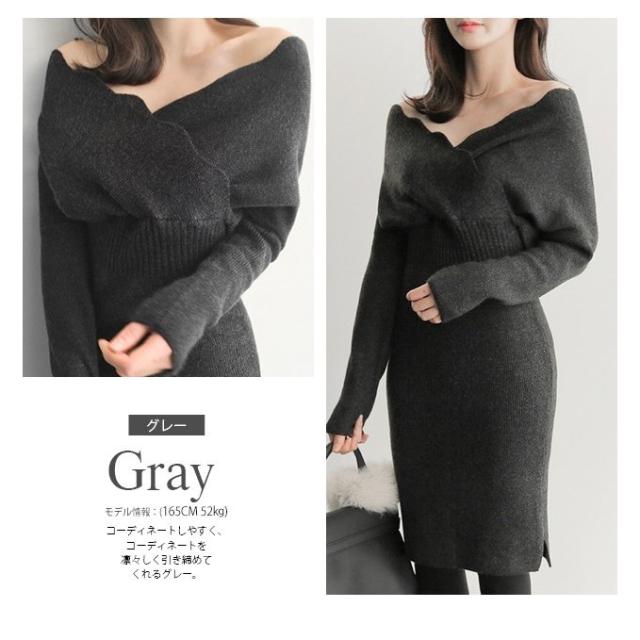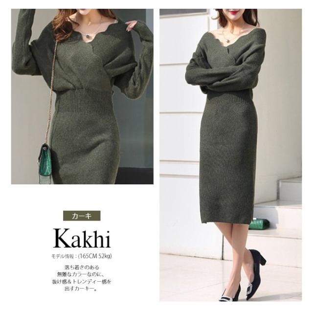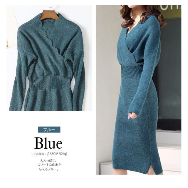 新春セール ニット ワンピース ニットワンピース ロングワンピース レディース 秋 冬 カシュクール vネック 秋冬 レディース 新色追加 即納