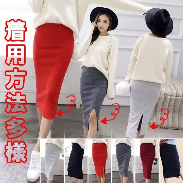 ペンシルスカート レディース 美脚 タイトスカート 通勤 オフィス ニット スカート ロング丈 マキシ丈 ニットスカート