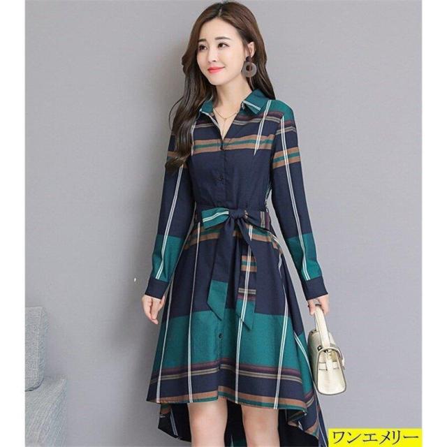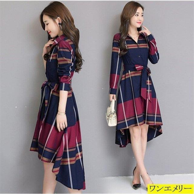 ワンピース レディース 春 長袖 ワンピース マキシ丈 チェック柄 体型カバー ロングワンピ フォーマル マキシ丈 30代 40代 リボン 新作