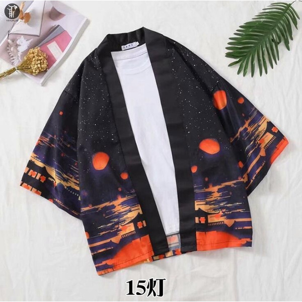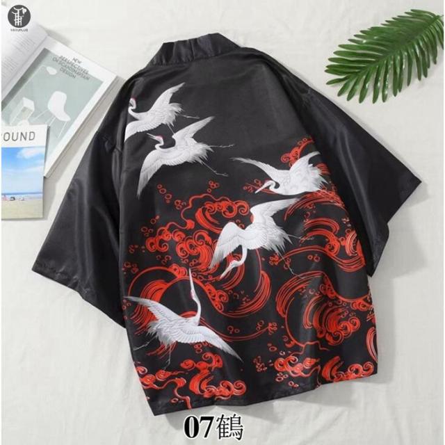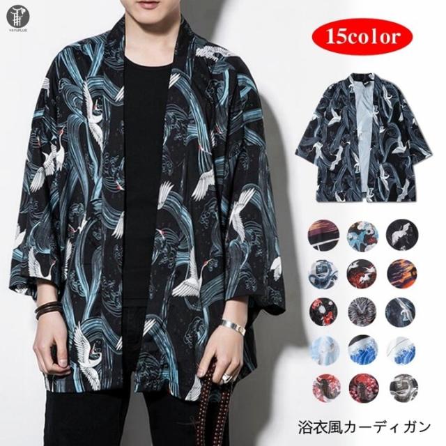 カーディガン メンズ 羽織 甚平風 夏服 はおり 和風 七分袖 着物 鶴柄 はっぴ おしゃれ 甚平 花火大会 夏祭り 半被 浴衣 花柄 代引不可