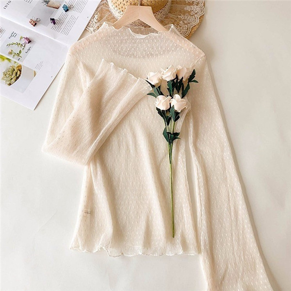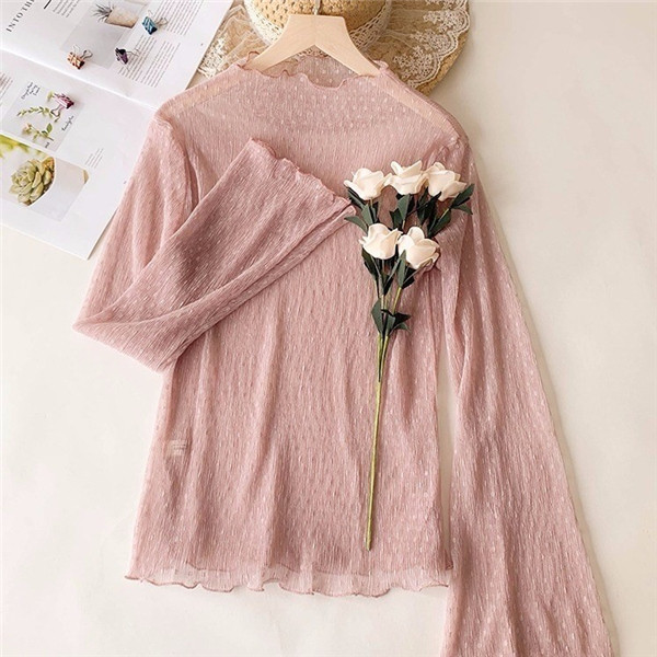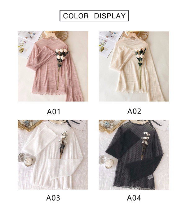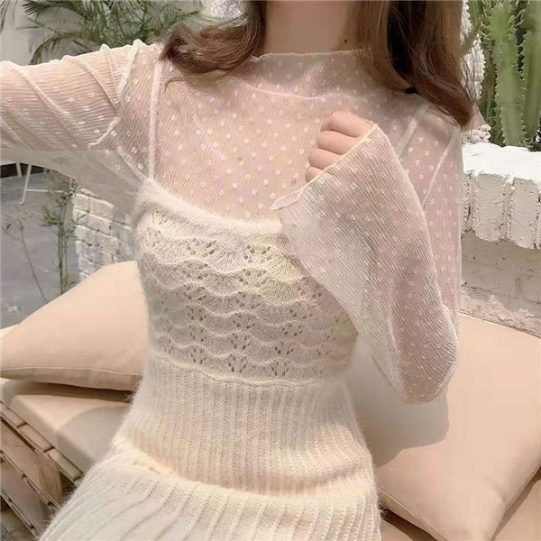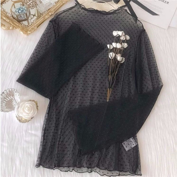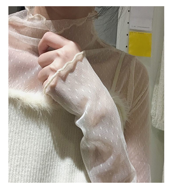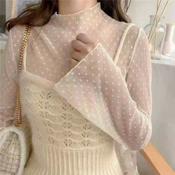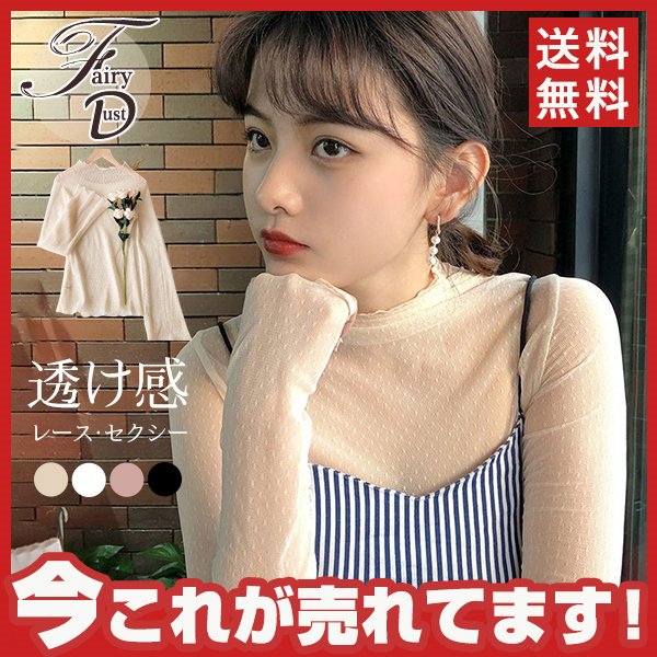 インナーシャツ レース 透け感 Tシャツ ブラウス シースルー レディース ハイネック ボトルネック チュール トップス 長袖 セクシー 送料無料