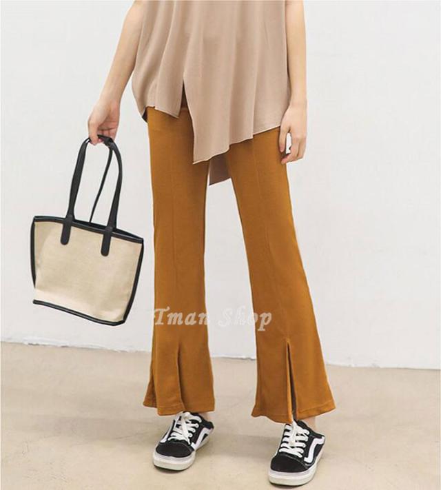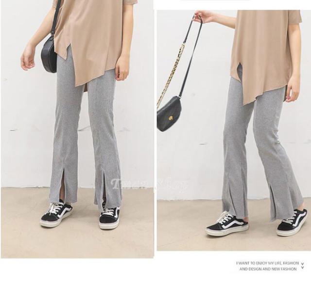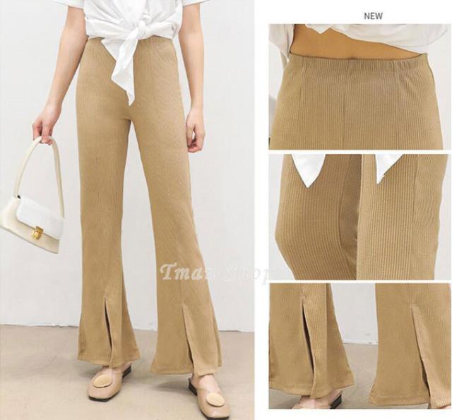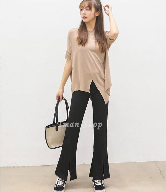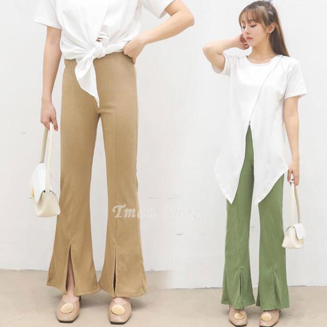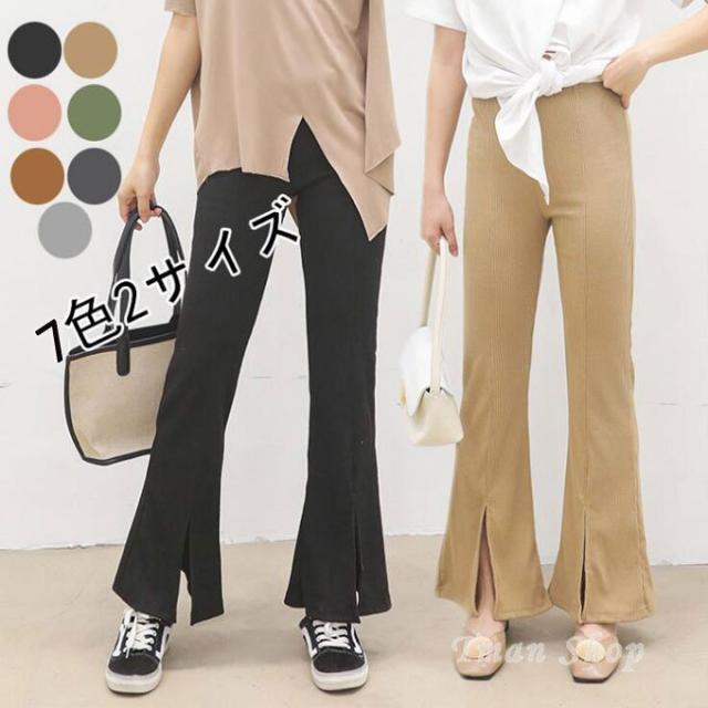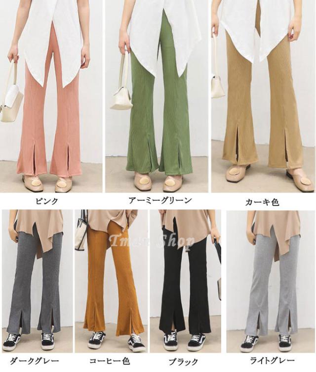 スキニーパンツ フレアパンツ リブレギンス レディース ロングパンツ 前スリット パンツ レギンス ボトムス ワイド ハイウエスト 伸縮性 脚長 無地 春 夏 秋