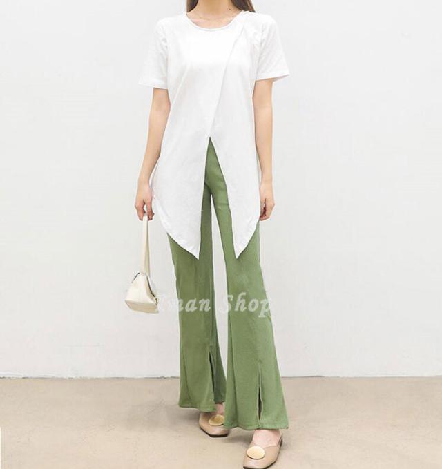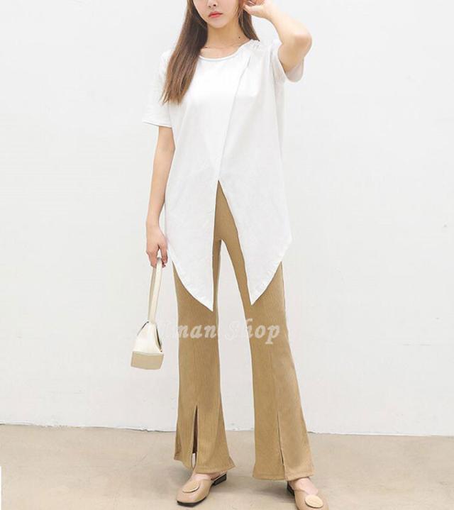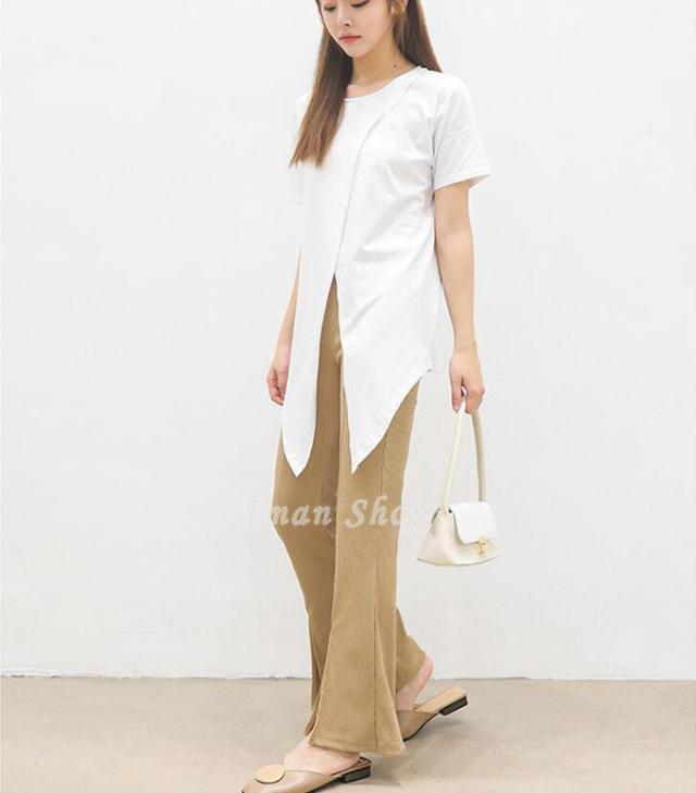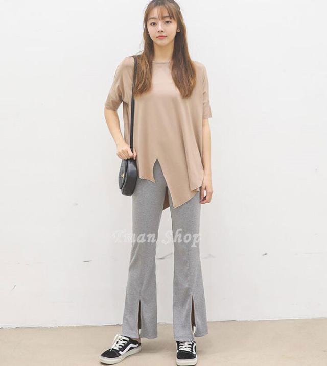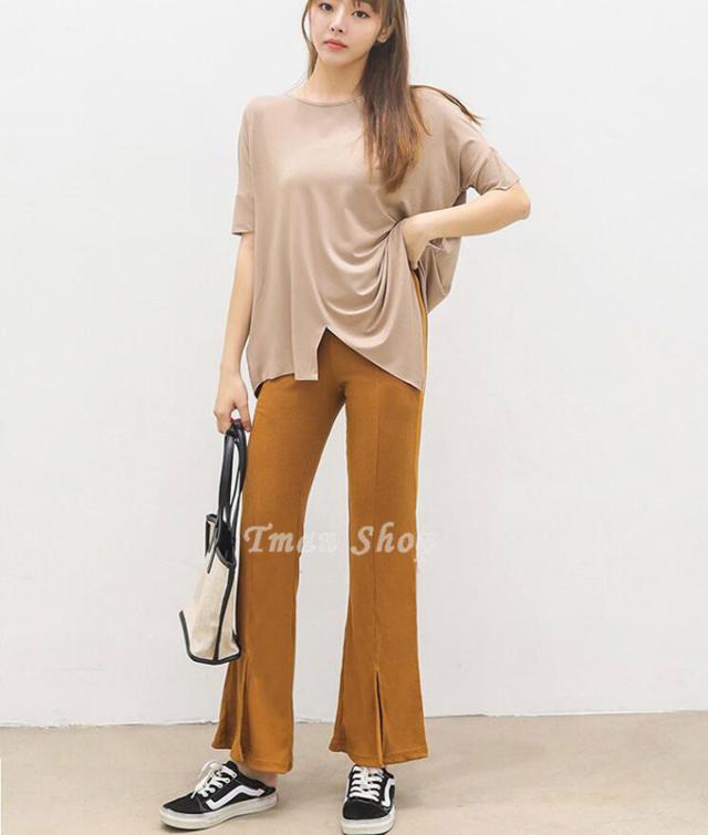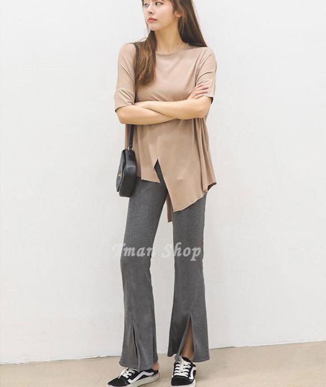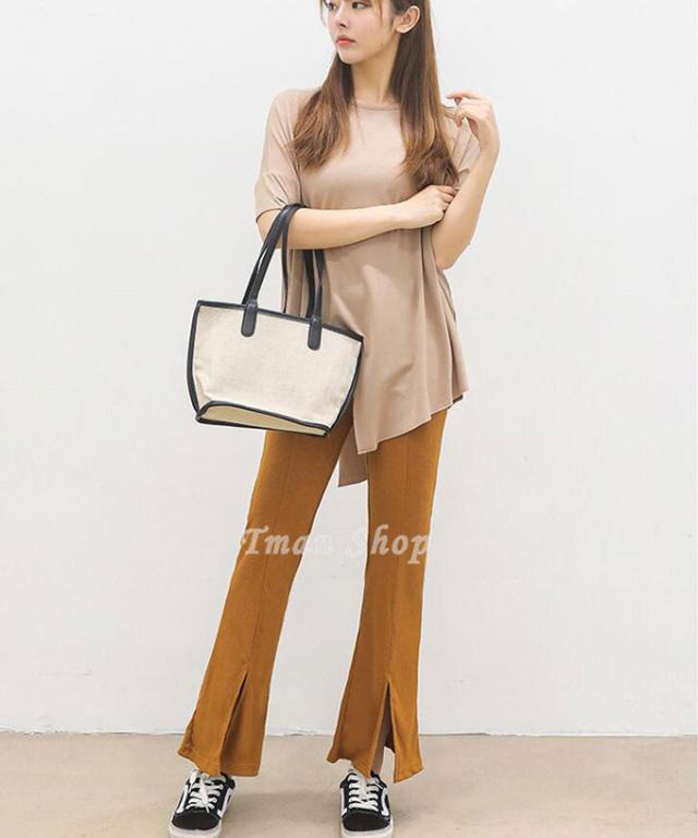 スキニーパンツ フレアパンツ リブレギンス レディース ロングパンツ 前スリット パンツ レギンス ボトムス ワイド ハイウエスト 伸縮性 脚長 無地 春 夏 秋