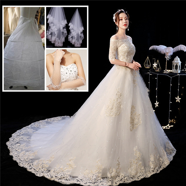 ウェディングドレス ベール 二次会 結婚式 披露宴 花嫁 3点セット 衣装 スレンダー レース ストール ロングドレス 韓国風 大きいサイズ