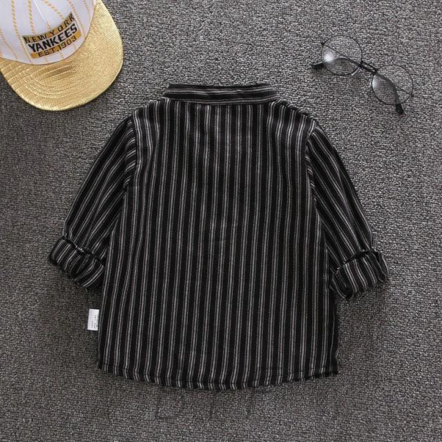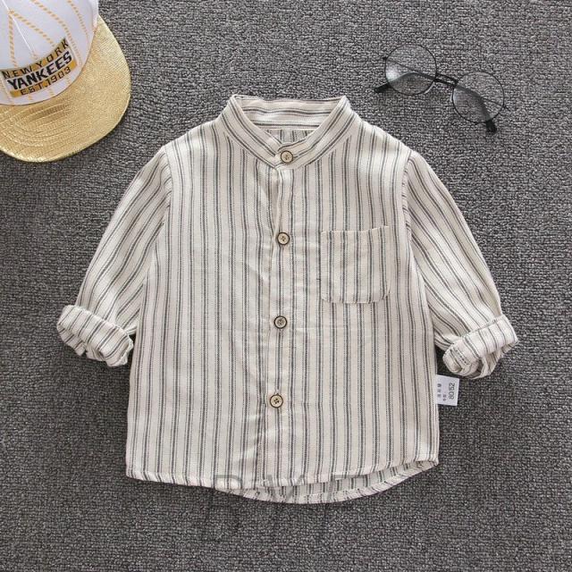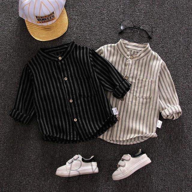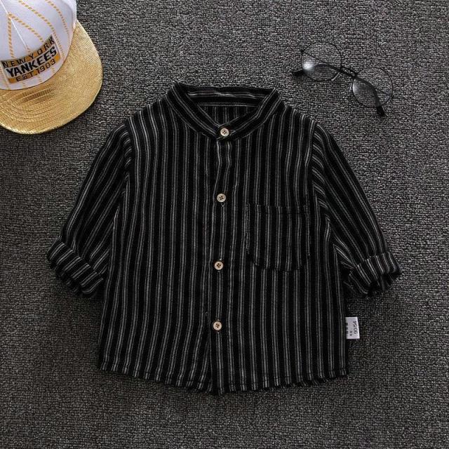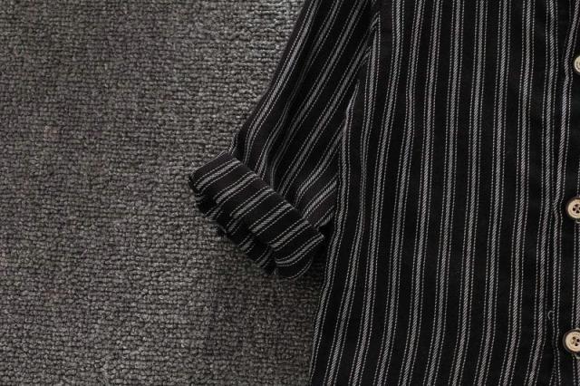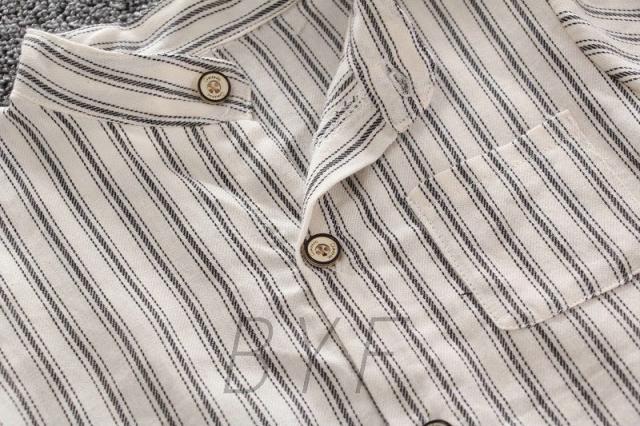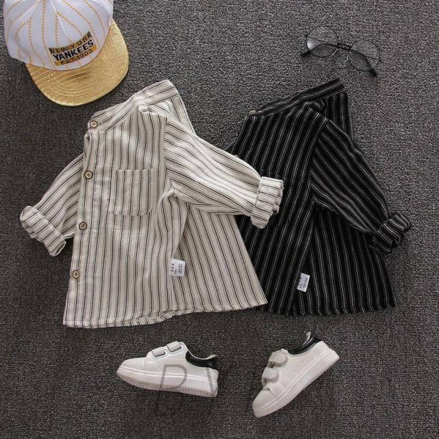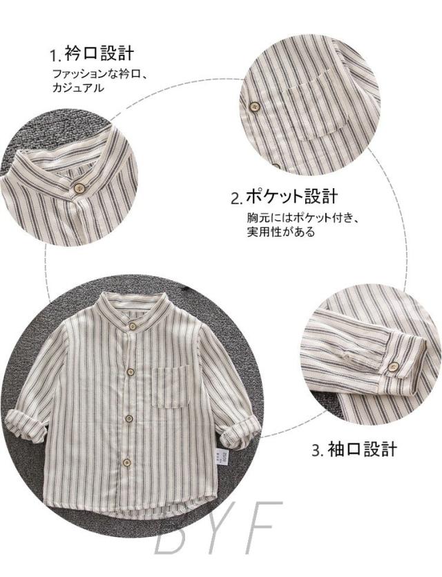 シャツ 長袖 バンドカラー ストライプ 前ボタン 子供服 キッズ ベビー トップス 羽織り カジュアル おしゃれ 定番 男の子 通園 80-120