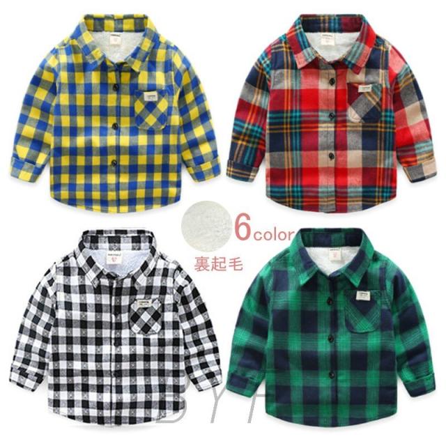 男の子 キッズ 子供シャツ 裏起毛 韓国子供服 チェック柄 あったか キッズシャツ 長袖 ブラウス こども服 冬用厚手 冬にピッタリ 子供服 可愛い