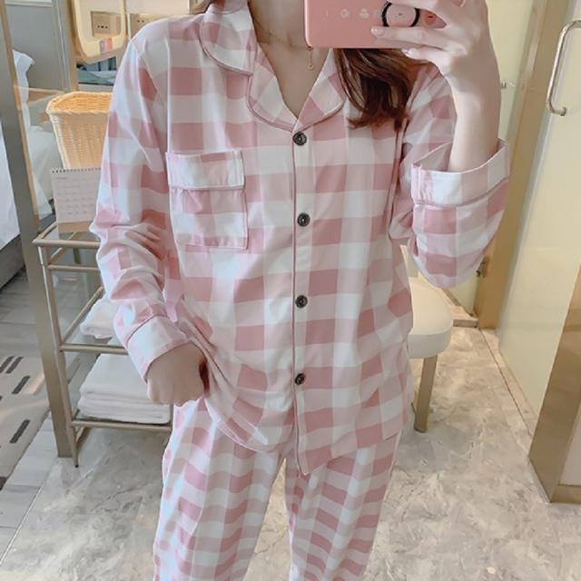 【seiu-】チェック柄 パジャマ レディース 春秋冬 長袖 前開き 上下セット トップス+ズボン ルームウェア可愛い 寝巻き 部屋着 大きいサイズ