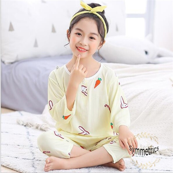 子供服 キッズ パジャマ 2点セット 子供パジャマ 女の子 男の子 ベビー 春夏秋 薄手 七分袖 長ズボン 部屋着 寝巻きランジェリー パジャマ 韓国風 ルームウェア